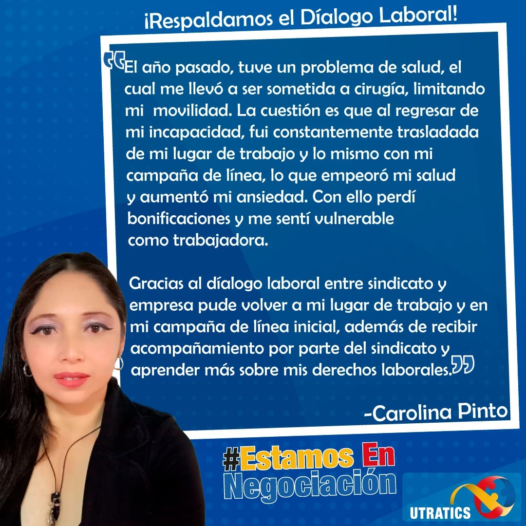 Han sido muchos los años que hemos tenido que soportar estas arbitrariedades. Pero no hay mal que dure 100 años ni cuerpo que lo resista. Por eso, con toda convicción y en nombre del sindicato de UTRATICS, queremos decirles que nos llegó la hora, que tenemos una excelente oportunidad para mejorar nuestras condiciones laborales, que esta es nuestra oportunidad y que debemos aprovecharla.